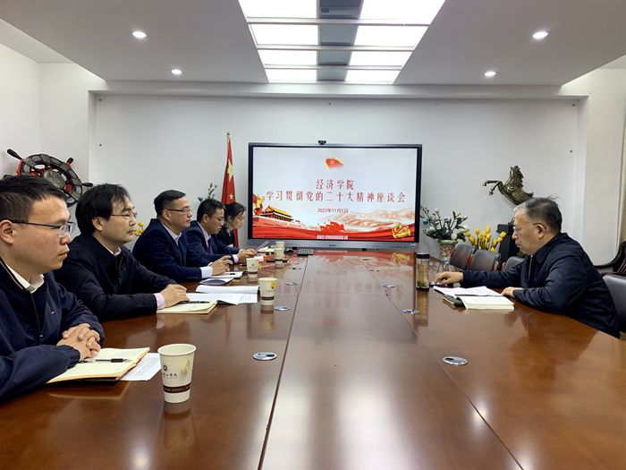 11月5日上午,经济学院召开学习贯彻党的二十大精神座谈会,学习领会习近平总书记代表十九届中央委员会向大会作的工作报告,汲取精神力量,明确奋进方向。党委副书记、校长崔景贵出席会议并与参会人员进行交流。经济学院党委书记李锋、院长李向东、副书记许星、副院长袁奋强以及学工办和党政办负责人参加了座谈。会议由李锋主持。