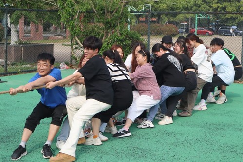 第一项活动由“两人三足、不倒森林”两个部分组成,活动为计时积分接力赛。8个班级分为两组,14个班级进行比赛,依据用时长短排名。参赛同学在办赛中争分夺秒,为班级的好成绩而奋斗。第二项活动为拔河,8个班级分为4组,一组两个班级进行对抗,最终得出班级排名。同学们在强有力的指挥声中,劲往一处使,用尽全力,为了最终的胜利。同学们在比赛中竭尽全力,为了班级荣誉而战。