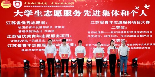 获奖的人员包括:在志愿服务方面,获江苏省青年志愿服务行动组织奖的王军琦老师;在“挑战杯”中国大学生竞赛中获得了国赛银奖的“绿帐‘1+1’社区公益创业的探索者”团队的王子贤;在社会实践活动中,获江苏省“三下乡”社会实践优秀团队的陈雨露以及常州市大学生社会公益实践活动十佳团队:“三杰燎原”党史学习教育团的李金燕。