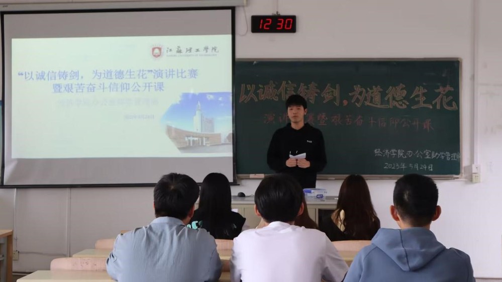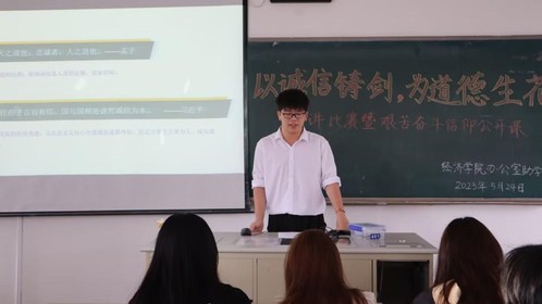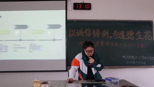 为弘扬诚信文化、推进诚信建设、提倡艰苦奋斗、勤俭节约精神、宣传资助政策。经济学院5月24日于59号楼401举办“以诚信铸剑,为道德生花”演讲比赛暨艰苦奋斗主题信仰公开课。