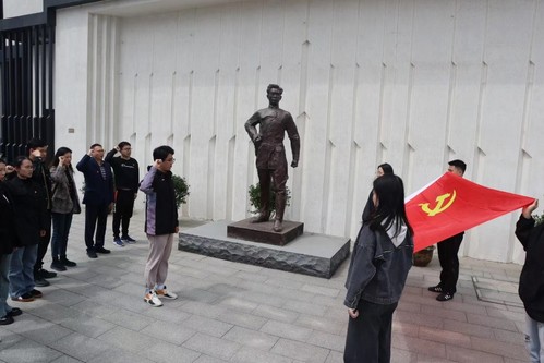 在张太雷纪念馆,学生党员们通过参观一幅幅珍贵的历史图片、一件件历史实物,深刻感受到了张太雷同志短暂而波澜壮阔的一生。在参观结束后,大家集聚至张太雷同志雕塑前,通过奏唱国歌,欣赏诗歌朗诵《今天,我手捧一束康乃馨》,对曾经为挽救国家危亡牺牲的先辈们表示崇高的敬意。许星书记为学生党员讲述了一堂庄严而生动的微党课,让党员同志们感受到了艰苦卓绝的革命岁月和共产党人的政治本色,使学生党员更加直观地了解党史,身临其境地感受共产党人。他表示,以“二十大精神”为思想指引,激励青年党员为党为国而努力奋斗地精神力量,使之立志成为担当民族复兴大任的时代新人。最后在党员宣誓中重现历史,觉醒灵魂,结束了第一部分的活动。