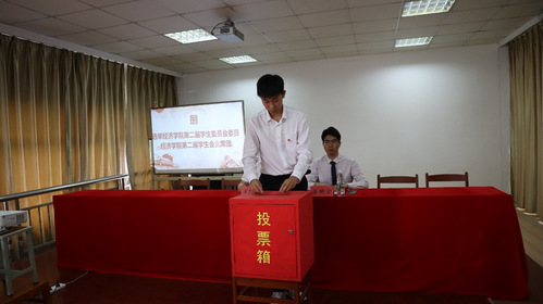 本次大会本着公开透明民主的原则,选举经济学院第二届学生委员会委员以及学生会主席团成员。会议在雄壮的国歌声中拉开帷幕。由校团委领导王一宁,院党委领导许星宣读批复,寄希望全体学生会成员能秉承着全心全意为同学服务的宗旨,实现自我成长、自我发展、自我管理,在未来的工作中做好时间管理,处理好学习工作的关系,严于律己,做好表率。并听取了经济学院第一届学生委员会工作报告并进行审议工作,由学生代表宣读了经济学院第二届学生委员会委员候选人预备人选,以及学生会主席团候选人预备人选的简介,在一名监票人和两名计票人的的监督下,与会代表进行投票,最终通过差额选举确定了五名学生会常任代表,分别是石茜芸(女),司梦娜(女),邵诗可(女),钟天翔,黄慧(女),三名主席团成员:王龙,王昕怡(女),钟天翔。最后,与会同学一起奏唱校歌《放飞梦想》,宣布大会结束。