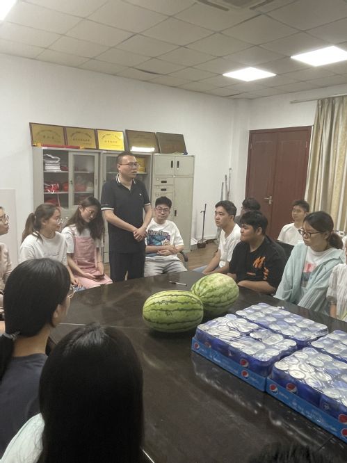 慰问会上许星与考研学生进行亲切的交流,代表学院向正在准备考研的学子表达鼓励和期望之情。他深入了解同学们的备考学习进度、学校生活情况,嘱托考研学生们要从分利用假期时间,合理规划学习时间和进度,保持身心健康,如遇问题要积极主动地寻求辅导员老师的帮助,坚持到底就是胜利。之后为全体考研学生送上了西瓜和可乐,为他们的酷暑学习送去丝丝清凉。