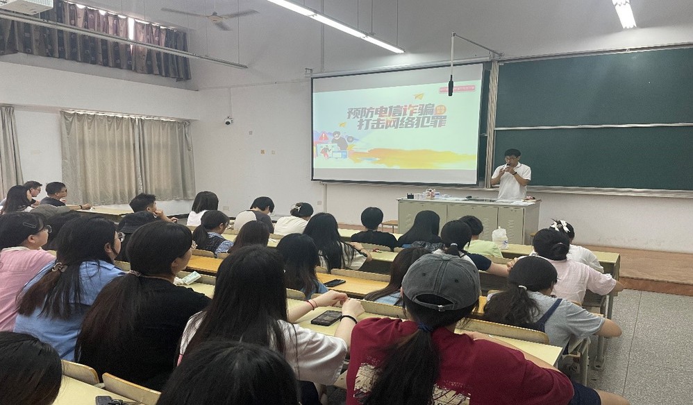 纪老师先以诈骗的种类为首,进入活动主题,并结合高校各类频发案例以及当前网络诈骗的新形势、新手法让大家了解到电信诈骗、贷款诈骗、赌博诈骗、网络诈骗与各种防诈知识,切实提高了参会人员的防范诈骗意识。纪老师对比了学院上半年诈骗的真实案例数据,利用精准数据确保宣传工作深入人心,切实筑牢防范诈骗的“防火墙”,做到“六个一律,八个凡是”,坚决遏制电信诈骗的高发势头。