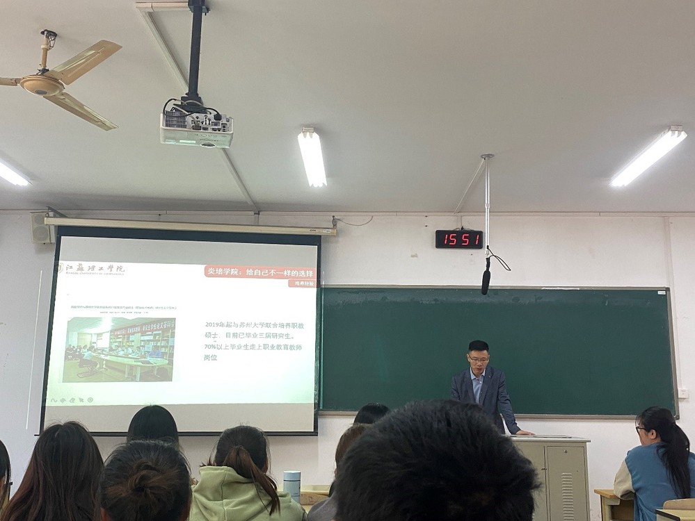 会上,副院长郝永贞分析了目前就业形势,指出当前对于职业教育的需求持续增大,职业教育是我国现代教育体系中的重要组成部分,对于培养高素质技能人才、提高就业率以及促进经济发展具有不可替代的作用。同时,郝书记介绍了炎培学院的由来、炎培学院职业教育研究生的发展现状、专业设置、培养模式以及未来就业前景,为有志于从事职业教育研究的学子提供更加全面的信息和机会。