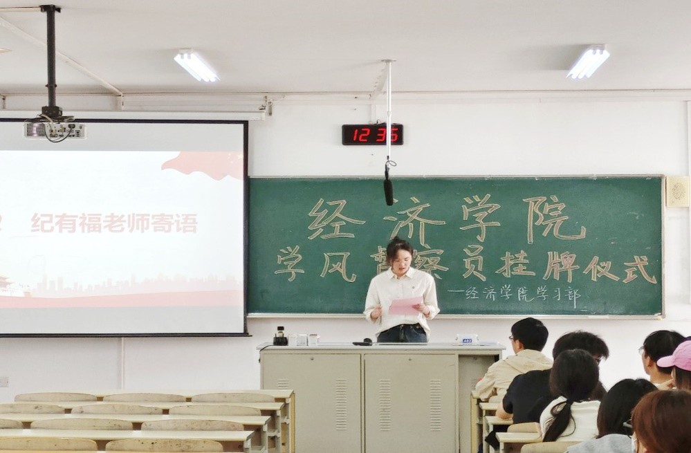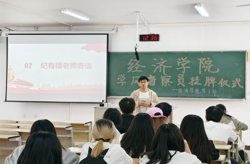 为了进一步创造良好的学习环境,形成良好的学习氛围,促进经济学院的学风建设。102612:30学习部在64号楼402举办了经济学院学风督察员挂牌仪式,本次活动由学习部董妍同学主持。