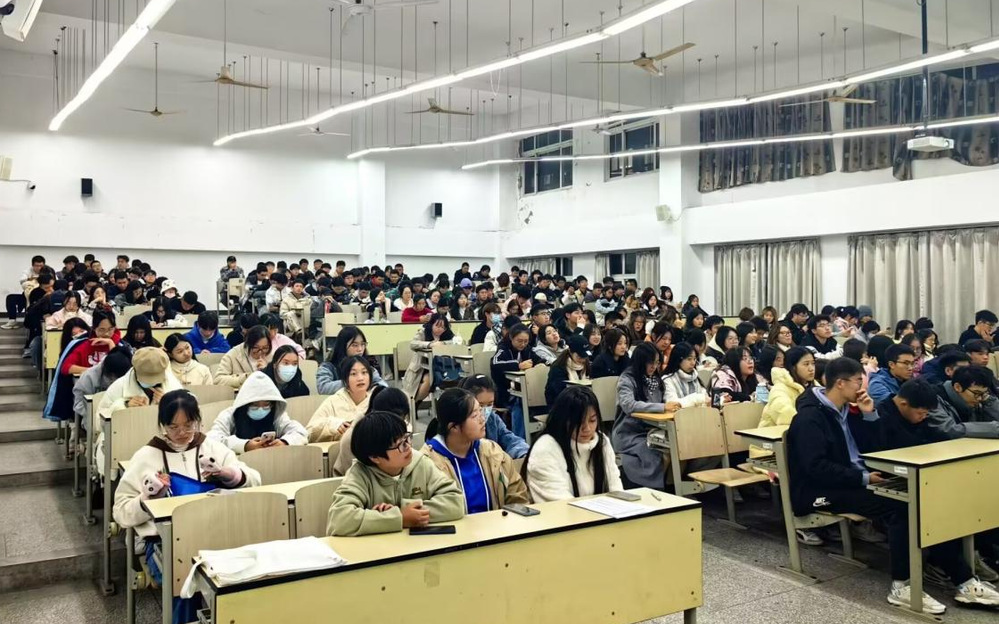 外国语学院国际教育中心潘青婧老师,毕业于澳大利亚昆士兰科技大学,澳大利亚景程国际教育交流协会执行理事,有着丰富的海外留学及职业规划经验。会上,潘青婧老师讲述了出国深造的优势、各国家留学生活的特点以及一些知名院校的介绍,并且紧跟会议内容开展了一些好玩新颖的游戏,不仅活跃了现场气氛,而且激发了学生对留学生活的憧憬。此外,潘青婧老师还分享了几位有留学经历的学长学姐的个人短片,并针对短片细节进行了提问,加深了学生对此次活动的印象。