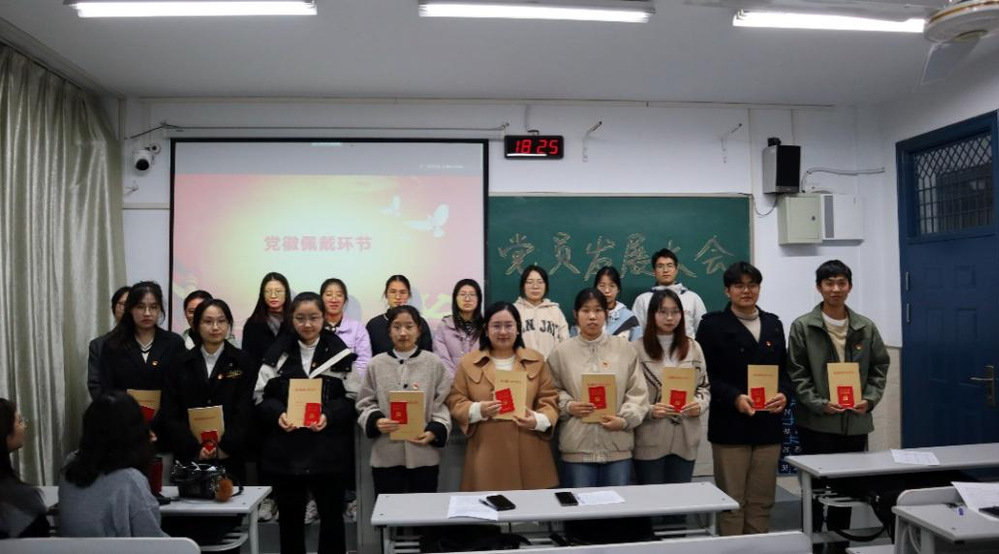 在为新发展成员佩戴党员徽章后,荣文婷发表寄语,她向各位中共预备党员表示祝贺,同时也对大家提出殷切期望,希望各位党员同志们用实际行动展现新时代共产党员的责任与担当,牢记初心使命,坚定信仰,踔厉奋发!最后,各位党员同志们聆听庄严的《国际歌》,重温矢志不渝的誓言,坚定为共产主义事业奋斗终生的信念。