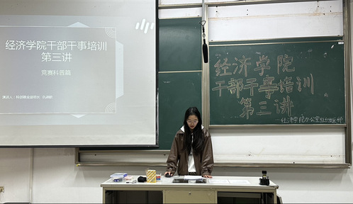 为了让经济学院新进学生会干事熟悉竞赛流程与类别,激发他们参加竞赛活动的积极性,切实提升学生的心理健康与防护意识,培养良好的心理素质。11月14日中午,经济学院办公室组织发展部联合其他部门于在59号楼东一阶开展2023-2024学年学生干部干事培训系列讲座第三讲。经济学院各部门干部干事出席本次活动,仇淑歆、邱语桐主持干部干事培训第三讲。