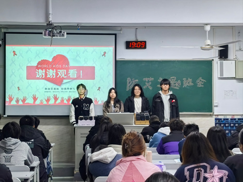 本次班会的顺利开展,让同学们了解更多艾滋病的相关知识,在培养同学们关爱艾滋病患者良好品德的同时,增强了自我保护意识和社会责任意识,对艾滋病防控工作起到了积极的作用。(撰稿:蒋冰点、陈彬彬、眭靖婧;拍摄:眭靖婧;审核:胡皓)
