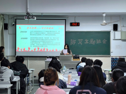 为积极响应国家关于预防艾滋病的政策部署,引导经济学院学生了解艾滋病,培养健康意识,提高学生的防范能力。11月28日晚,经济学院于13号楼204教室开展“预防防艾滋”的主题班会。经济学院辅导员徐小昀出席本次班会。