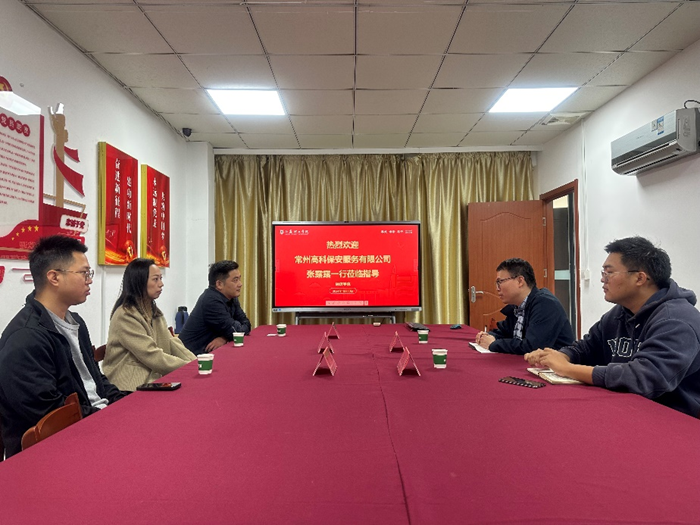 10月10日上午,常州高科保安服务有限公司领导陈露露一行来我院进行考察交流。我院党委副书记、副院长许星,学工办副主任席龙昌参加交流会。