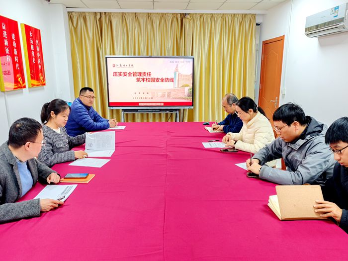 会上,潘洹向与会人员传达了《省教育厅有关于开展全省高校春季安全检查工作的通知》(苏教安函〔2025〕2号)和学校相关会议通知的精神。