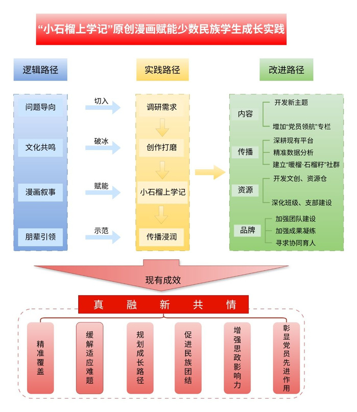 增加“党员领航·石榴花开”专栏:在漫画基础上,配套推出专栏,采访报道本院真实优秀的少数民族学生党员典型,将漫画的榜样力量进一步具象化、现实化,强化党建引领。