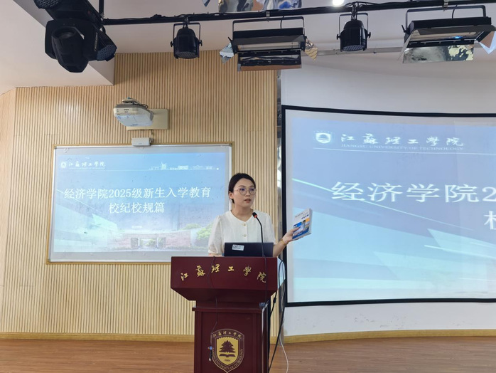 最后,2025级辅导员郜思洁对校纪校规进行宣讲,重点强调了学士学位授予要求、违纪处分规定、公寓管理细则及请假制度,引导新生树立规则意识,共同营造良好的校园秩序。