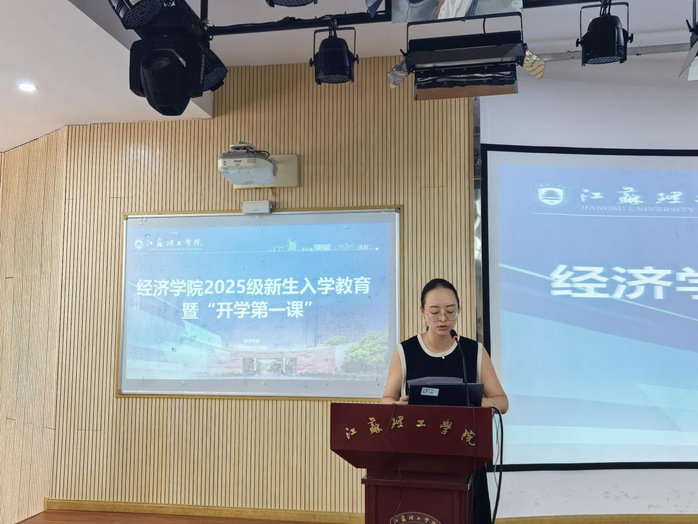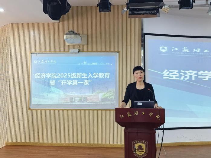 随后,经济学院党委副书记、副院长杨惠为新生解读大学生四年发展路径。她结合学业发展、能力提升、职业规划等多个维度,系统阐述了大学四年不同阶段的发展方向。同时,她还介绍了学院辅导员团队对于学生发展的支持作用,表示辅导员将全程陪伴学生成长,为学生们的个性化发展提供专业指导和贴心服务。