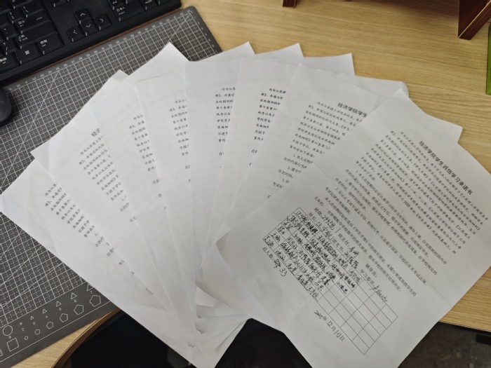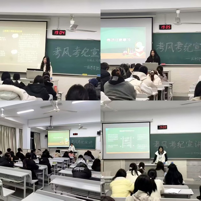 在各个教室,宣讲人通过精心准备的演示文稿,系统解读了学校及学院关于考试纪律的各项规章制度,具体说明了违纪行为的认定与相应后果,并结合经济学中“成本—收益”的分析视角,引导同学们理性认识到学术不端所带来的长远声誉损害与机会损失。他们强调考试既是检验学习成效的方式,也是锤炼自我管理、培养契约精神的重要过程。 期末考试周以来,经济学院已经通过班会、宿舍等条线向22-24级学生传达了诚信考试的重要性,并组织各班签署了诚信考试承诺书。