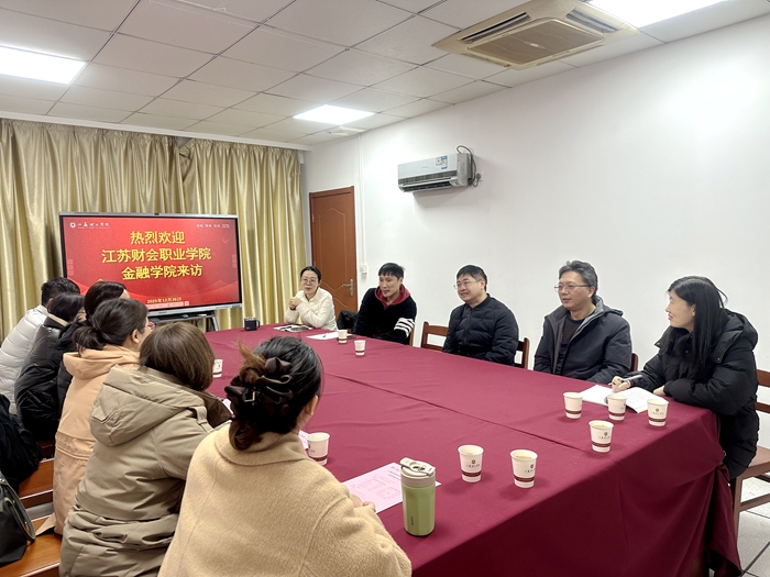 熊太纯代表经济学院对江苏财会职业学院金融学院同仁的到来表示热烈欢迎。他指出,两院合作基础良好、前景广阔,期望通过深入交流,在人才培养、课程共建、师资共享等方面凝聚合力,共同探索高职与本科教育衔接的有效路径,为服务区域发展输送更多高素质财经人才。